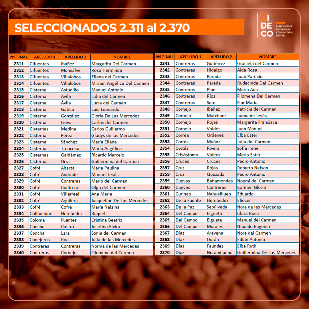 Continuamos contribuyendo al bienestar de los adultos mayores con el bono de calefacción, es por eso que les informamos de los 250 nuevos seleccionados, quienes deben acercarse a las oficinas de Dideco el viernes 8 de Julio desde las 08:30 a 14:00 horas.